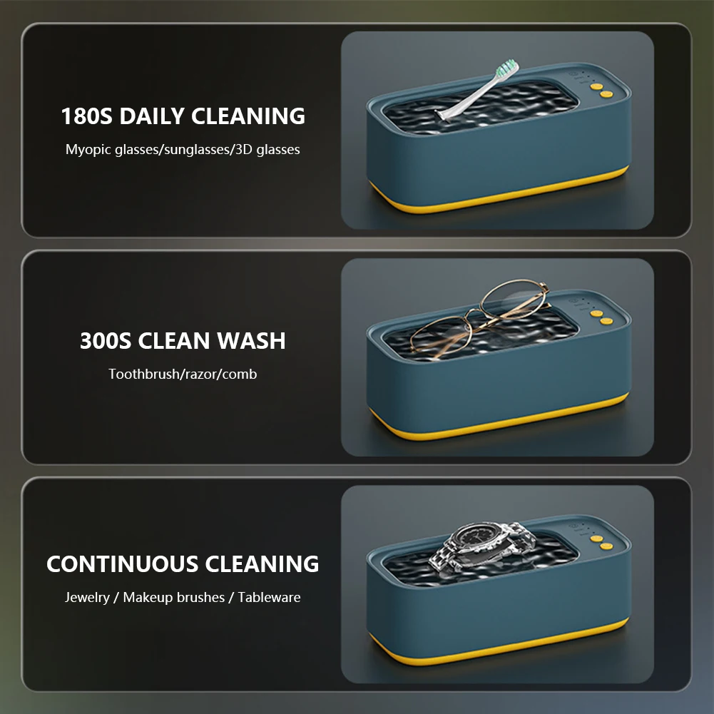 Ultrasonic High-frequency Vibration Cleaners 3 Gear Jewelry Eyeglasses Watches Cleaner Multi Function with 500ML Sink for Cleaning Eyeglass/Braces/Comb/Razor/Makeup Brush/Pacifier Feature: 1. Simple Operation: With just one button, you can easily turn the high-frequency vibration cleaner on or off, making it ideal for quick and hassle-free cleaning. 2. 360° Deep Cleaning: Our professional jewelry cleaner machine uses ultrasonic waves to quickly and easily remove dirt and grime from even the tiniest crevices without causing any damage, making your jewelry or other items sparkle like new. 3. High Frequency & Efficiency: With a powerful 45KHZ frequency and 98.99% cleaning efficiency, our cleaning machine can clean your items in just 3 seconds with a 500ml deep water tank. It operates quietly and reduces noise during cleaning, making it useful for multiple purposes. 4. Powerful Ultrasonic Waves: Our 360 degree cleaning machine uses strong ultrasonic waves to penetrate deep into your items and remove dirt, dust, and grime from every nook and cranny, giving your items a new lease of life. 5. Wide Range of Applications: Our jewelry eyeglasses watches cleaner is suitable for cleaning a wide range of items, including braces, combs, razors, jewelry, pacifiers, makeup tools, pens, metal cutlery, watch straps, nail clippers, toothbrushes, glasses, and more. Specification: Origin: Mainland China Capacity: 301-500ml Power (W): 15w Certification: NONE Type: Ultrasonic Cleaner Model Number: Ultrasonic Cleaners Material: plastic electronic components Color: green pink white (optional) Dimensions: 22.5x10.5x7.5cm/8.85x4.13x2.95inch Rated voltage: 3.7V Rated power: 15W Ultrasonic frequency: 45KHZ Battery capacity: 250mAh