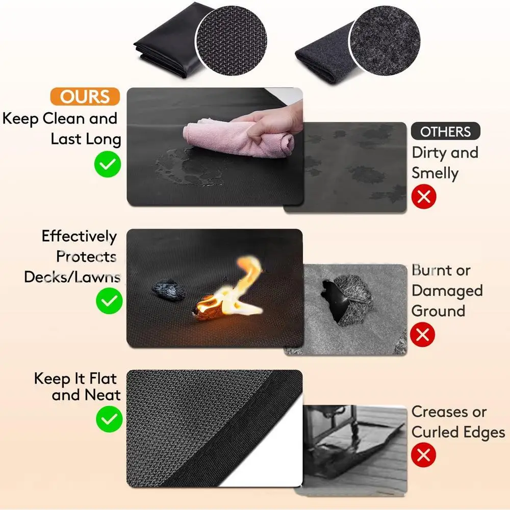 4.Not Easy to Break: Under Grill Mats for Outdoor Grill mats are made of fiberglass material that is flexible and strong, allowing you to cut them to fit any size or shape of the grill. They won't tear or crack due to heat, even after repeated use.