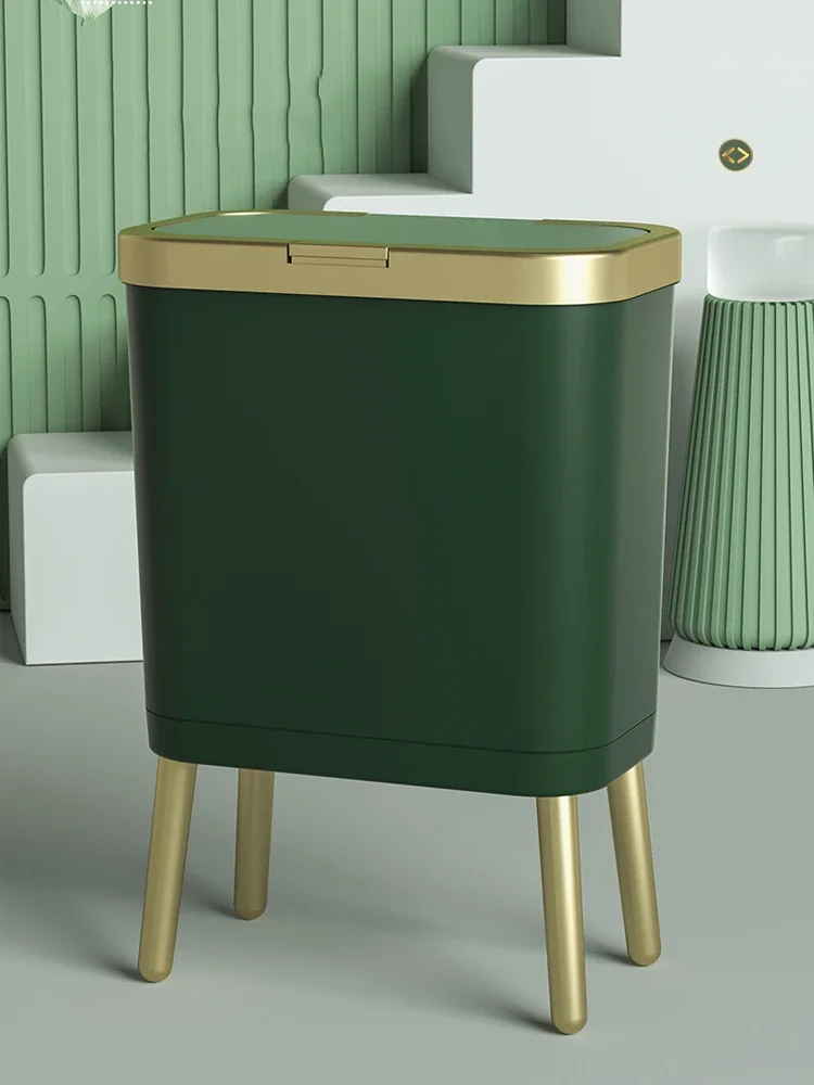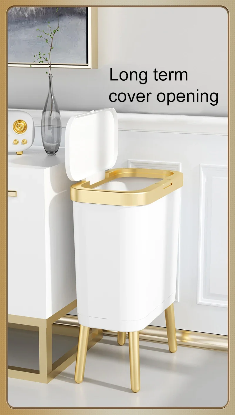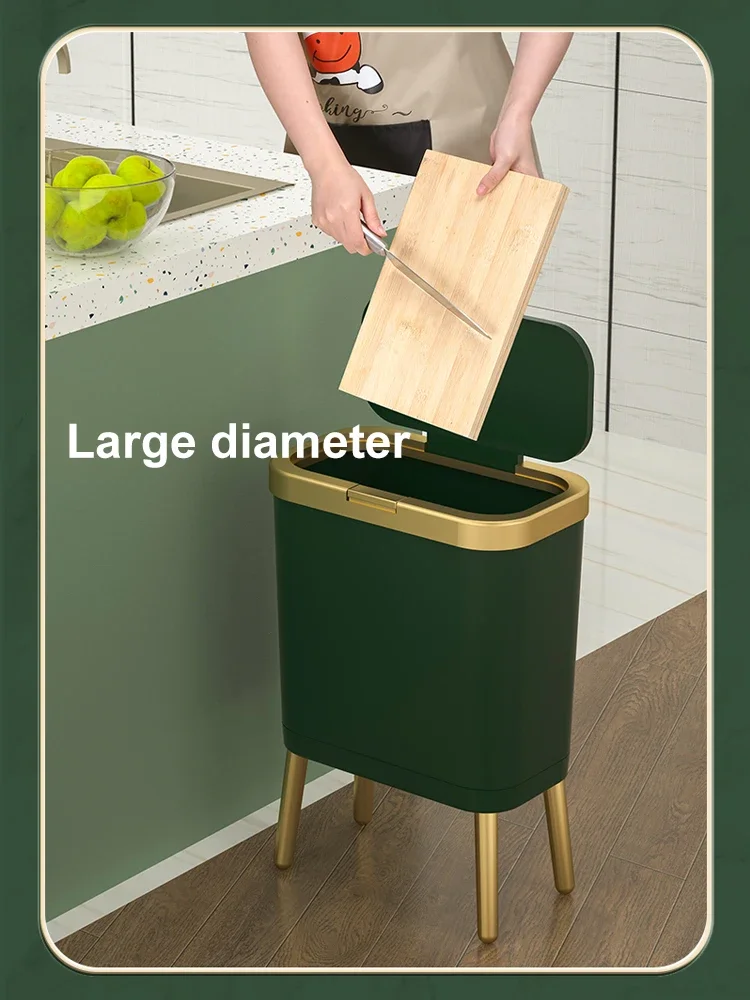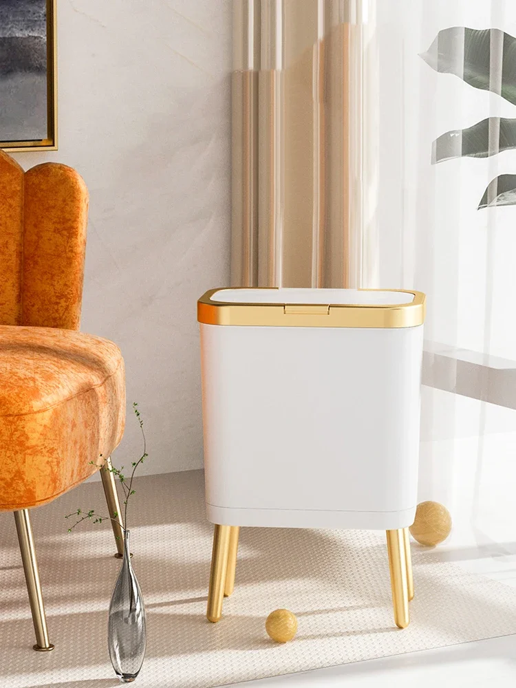 Unique High-foot Press Type Bathroom Trash Can Light Luxury Plastic Kitchen Garbage Bin With Lid Large Toilet Trash Can Bedroom
