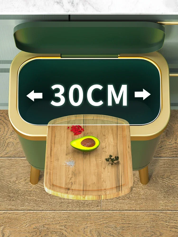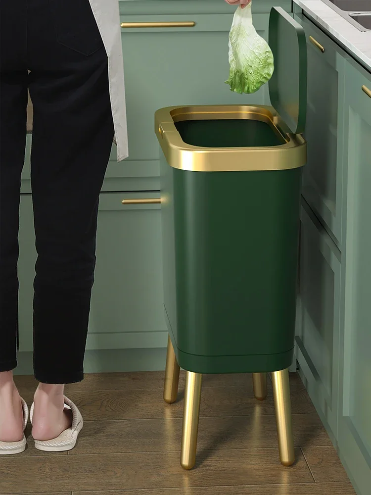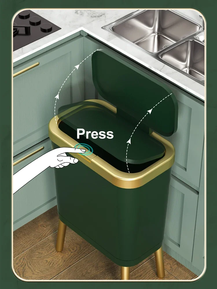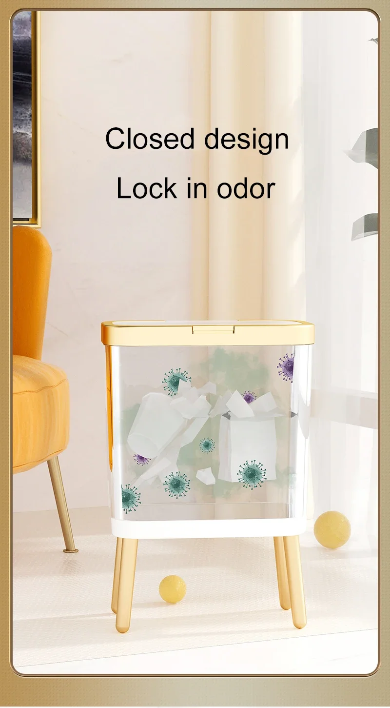 Unique High-foot Press Type Bathroom Trash Can Light Luxury Plastic Kitchen Garbage Bin With Lid Large Toilet Trash Can Bedroom