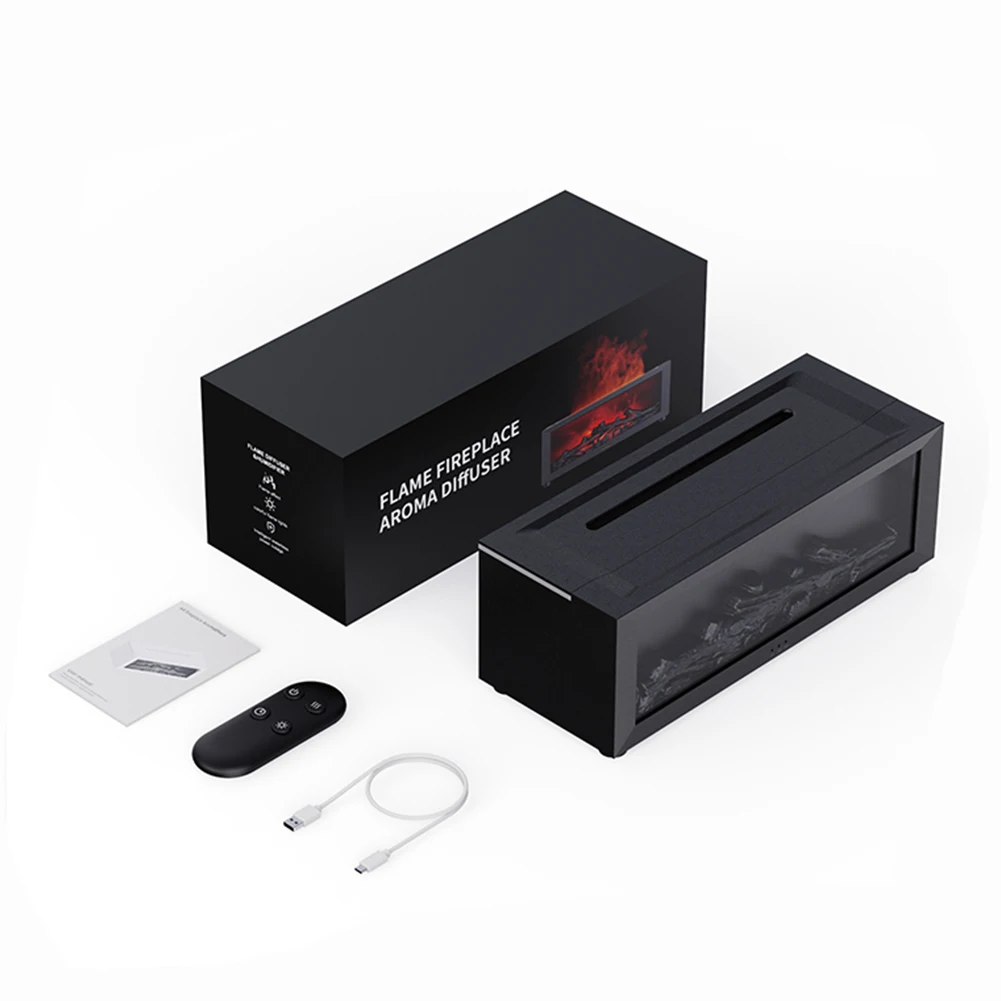 Aroma Air Humidifier Remote Control Simulation Fireplace Flame Humidifier Colorful Light Desktop Aromatherapy Diffuser Mute Work