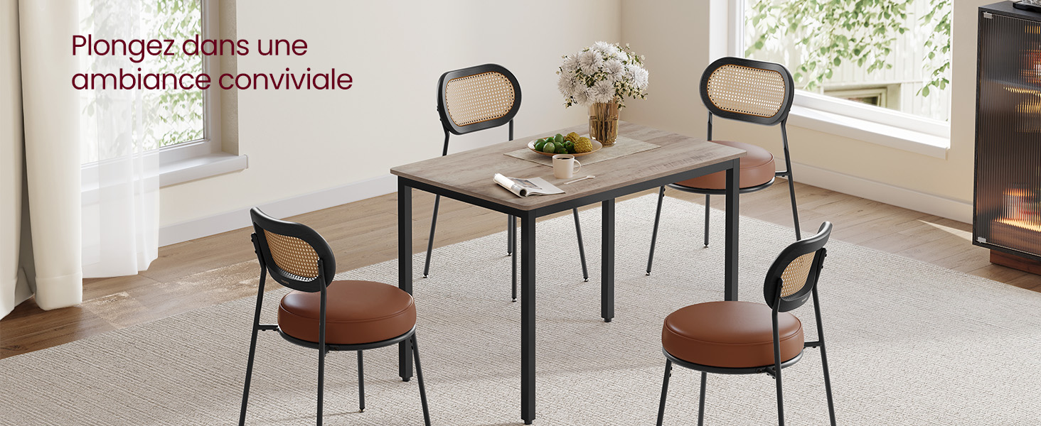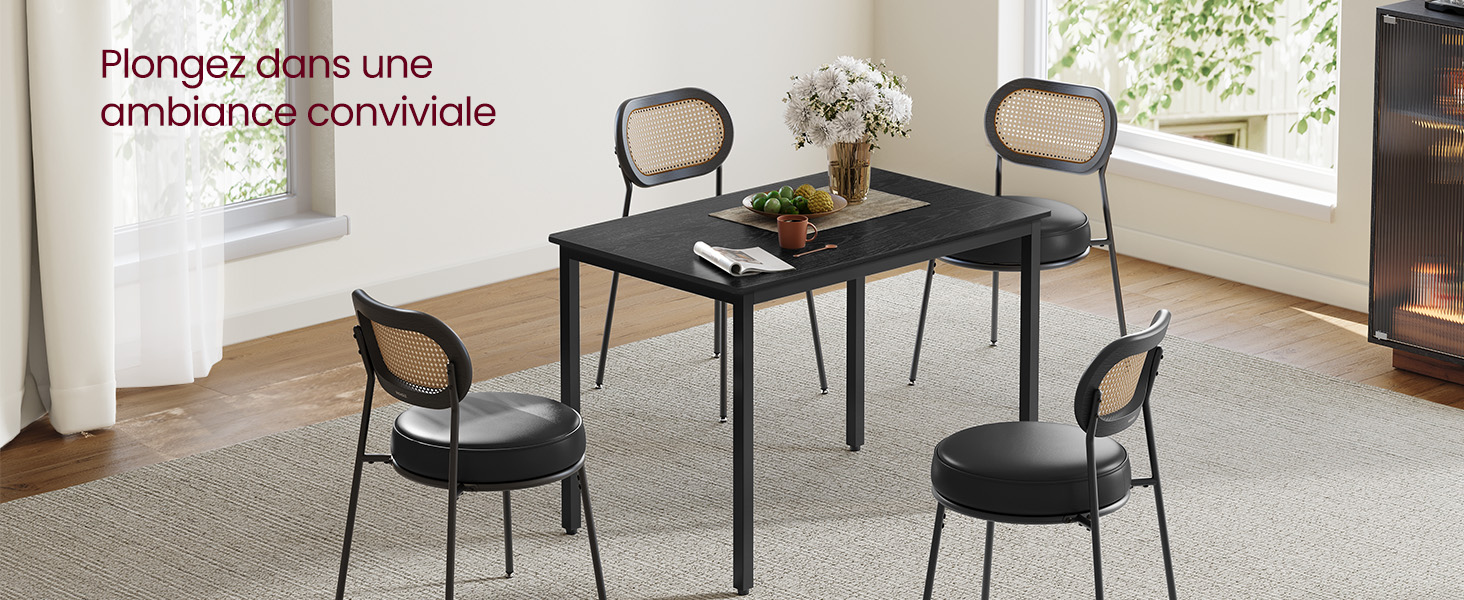 [Spacieuse pour 4 personnes] D’une surface de 70 x 110 cm (P x L), cette table à manger offre suffisamment d’espace pour 4 personnes. Asseyez-vous à table avec votre famille ou vos amis et savourez un délicieux repas
