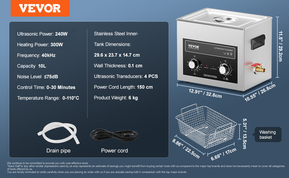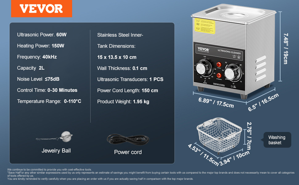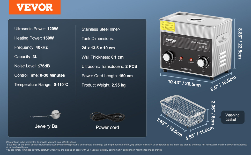 Powerful Cleaning Performance: The VEVOR Ultrasonic Cleaner operates at an ultra-high frequency of 40kHz, generating millions of tiny bubbles that explode in water, releasing strong cleaning energy. This energy penetrates every crevice, thoroughly removing stubborn stains from delicate parts, ensuring no area is left uncleaned.