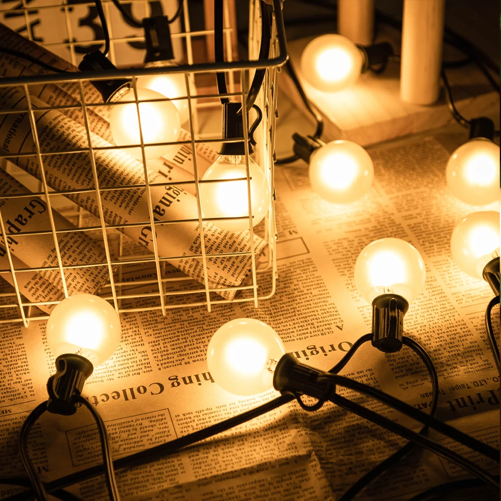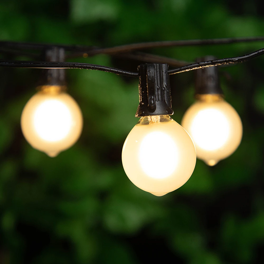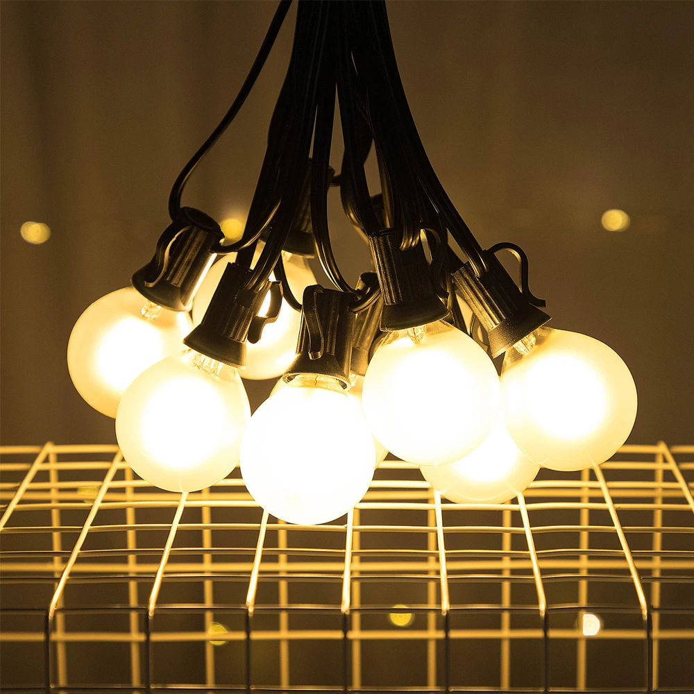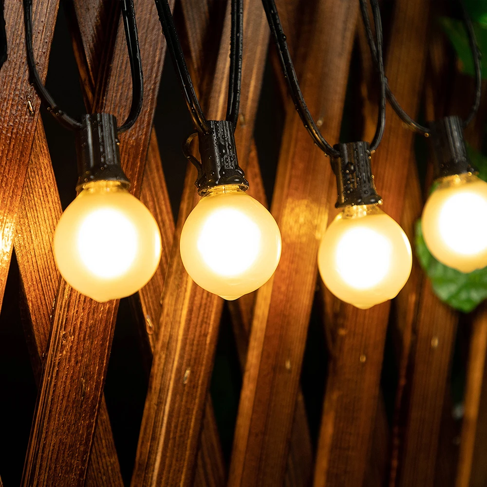 Energy-Saving : G40 LED frosted white string lights are made of glass, and use LED energy-saving bulbs, one bulb only consumes 1 watts, each 7.6M string only needs 10 watts in total, saving 80% compared to other string lights
