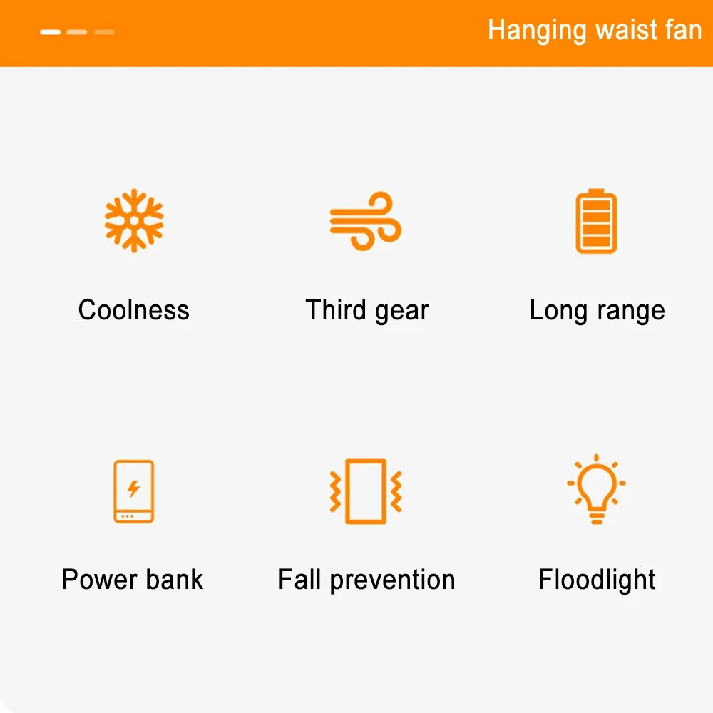 【Portable Waist Fan with Flashlight 2 in 1】It's a portable USB waist fan with flashlight. When you work outside or for outdoor activities, take this portable fan and you'll get all the necessities! 100m ultra-long distance bright light, so you are not afraid of the dark. The fan can be used as an SOS alarm light.