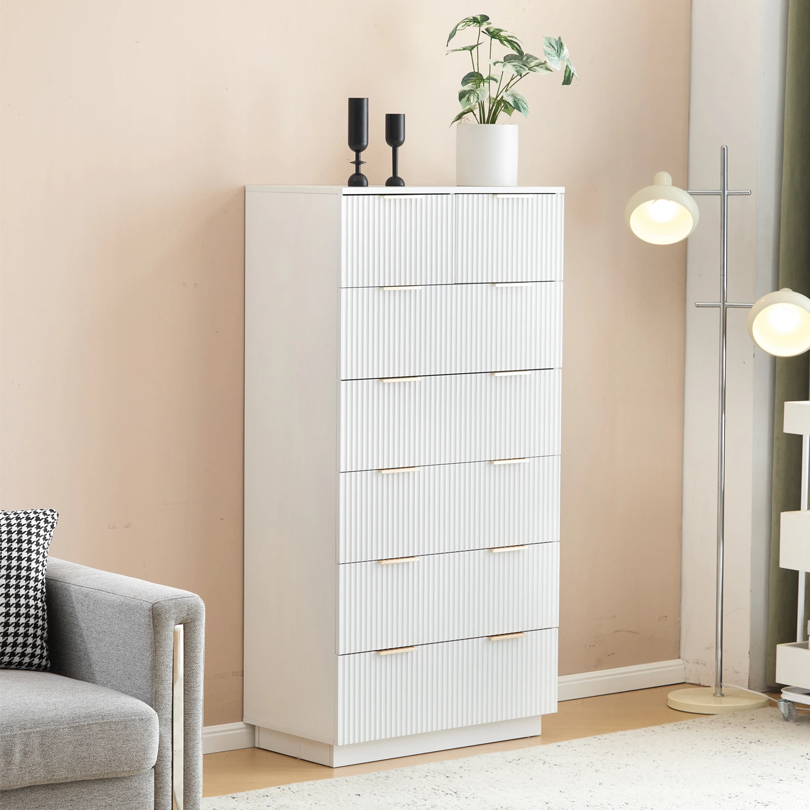 Generous Bedroom Storage: This seven-drawer cabinet is meticulously designed to meet the extensive storage needs of a bedroom, offering multiple drawers for organizing clothes, accessories, and personal items.