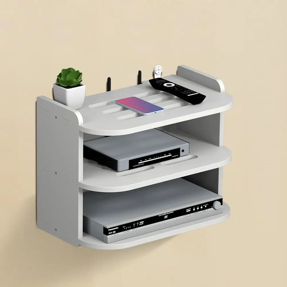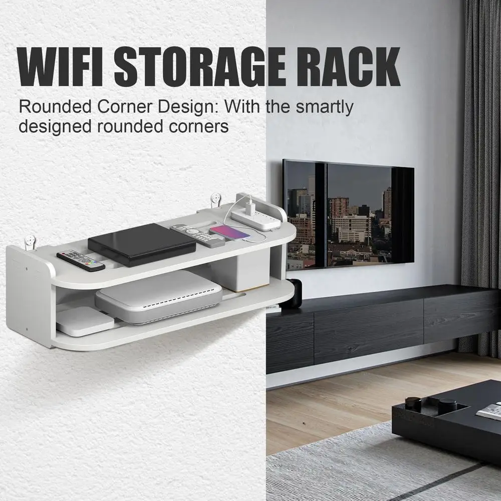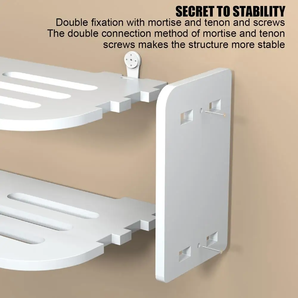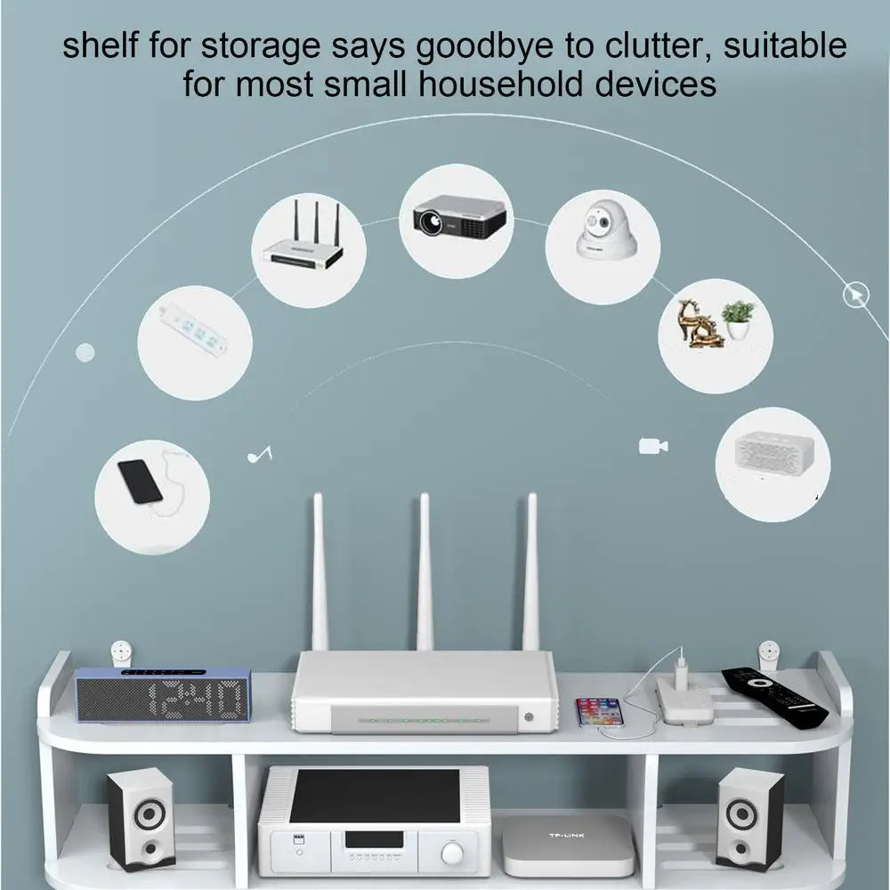 2.Efficient Space Organization: The rounded corner design of our Wifi Router Shelf ensures efficient and smart storage of personal items, while providing maximum safety for children against accidental bumps. Enjoy organized space and smart organization with ease
