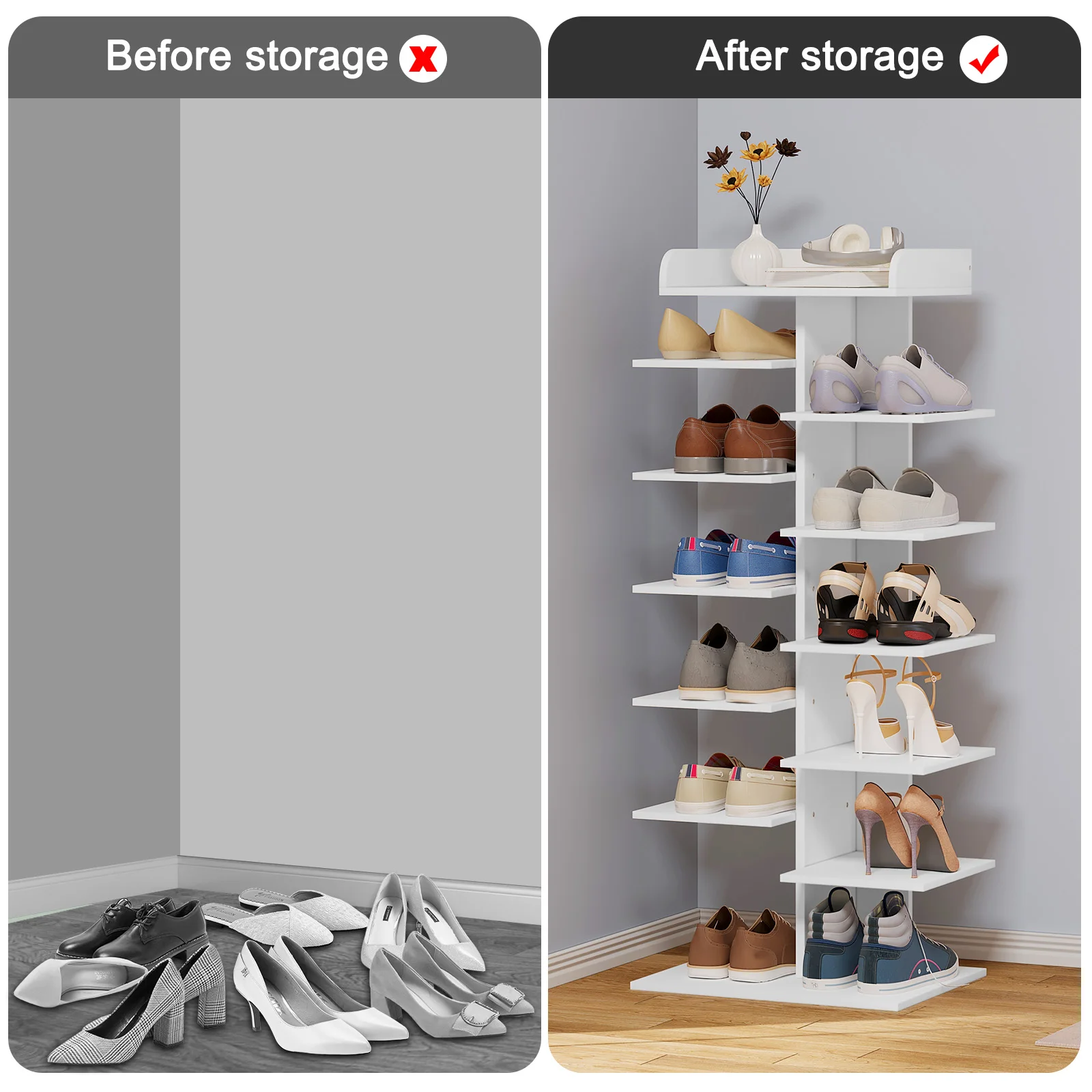 SPACE SAVING: With a vertical design, this open shoe rack takes up minimal space in the entryway, hallway, bedroom or dressing room, allowing you to store multiple shoes and easily find the pair you want
