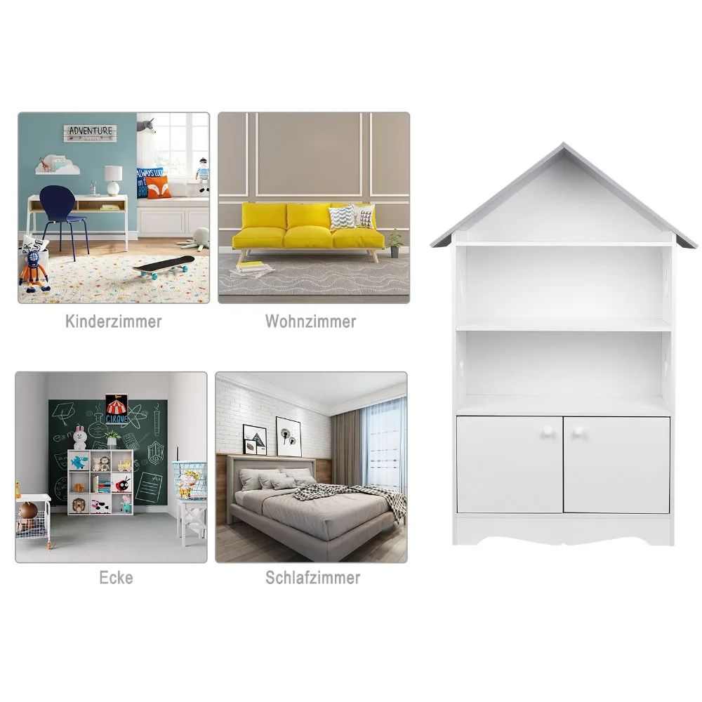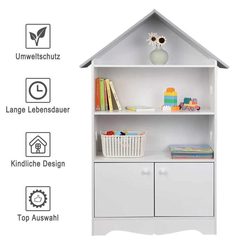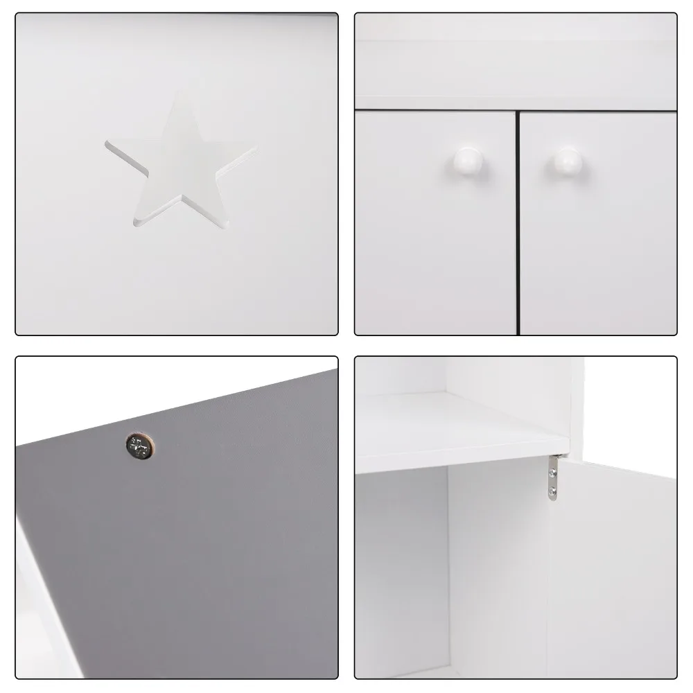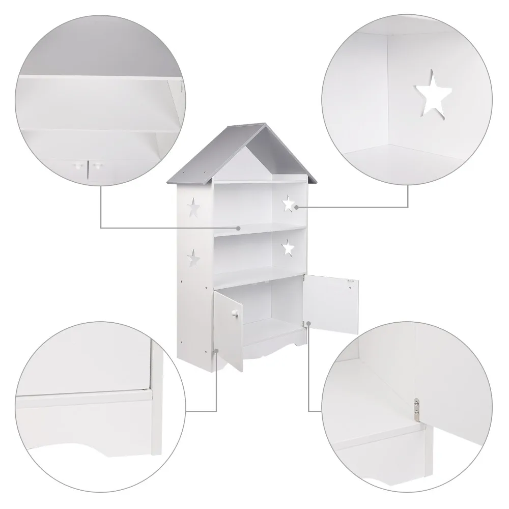 • [Large storage capacity]: ❤ This children's bookcase with 3 shelves and a small storage cupboard which provides enough space for items such as books, toys, pictures etc. Including star shaped hollow elements which can easily attract children's attention and interest.