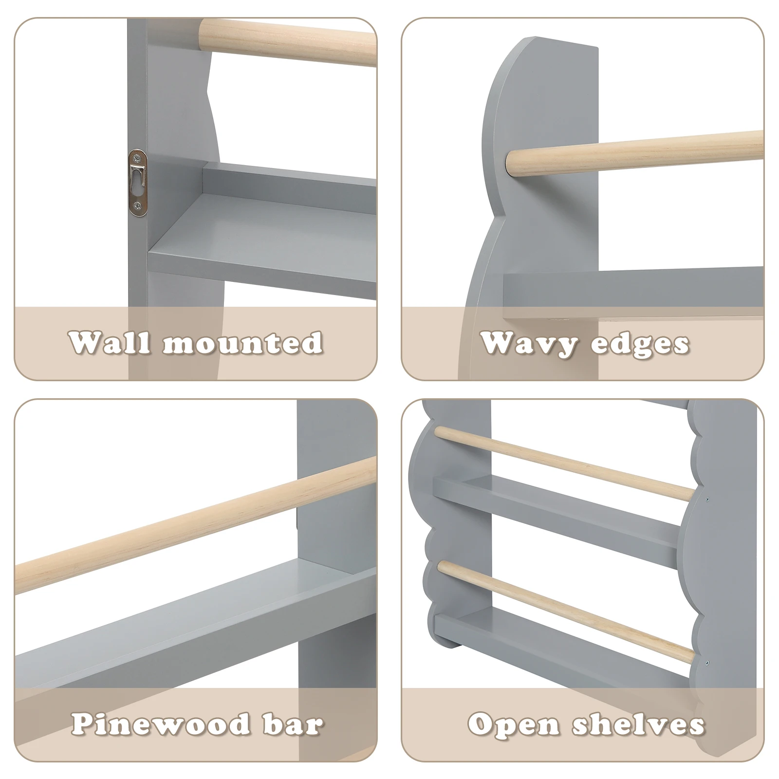 STURDY STRUCTURE: Made of MDF (E1) and pine wood, the wooden wall shelf is undoubtedly sturdy. The wall mounting medium is designed to save space, preventing this children's furniture from tipping over, so your little ones can use it safely and enjoy their time reading and searching for their favorite books