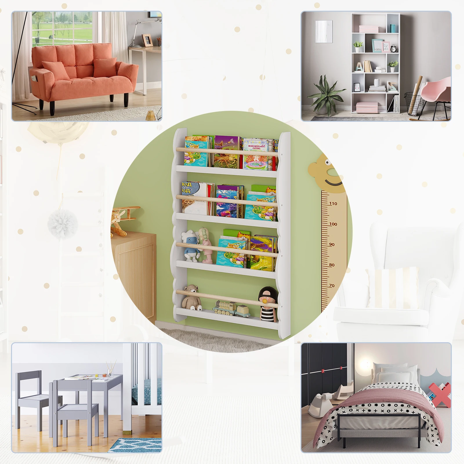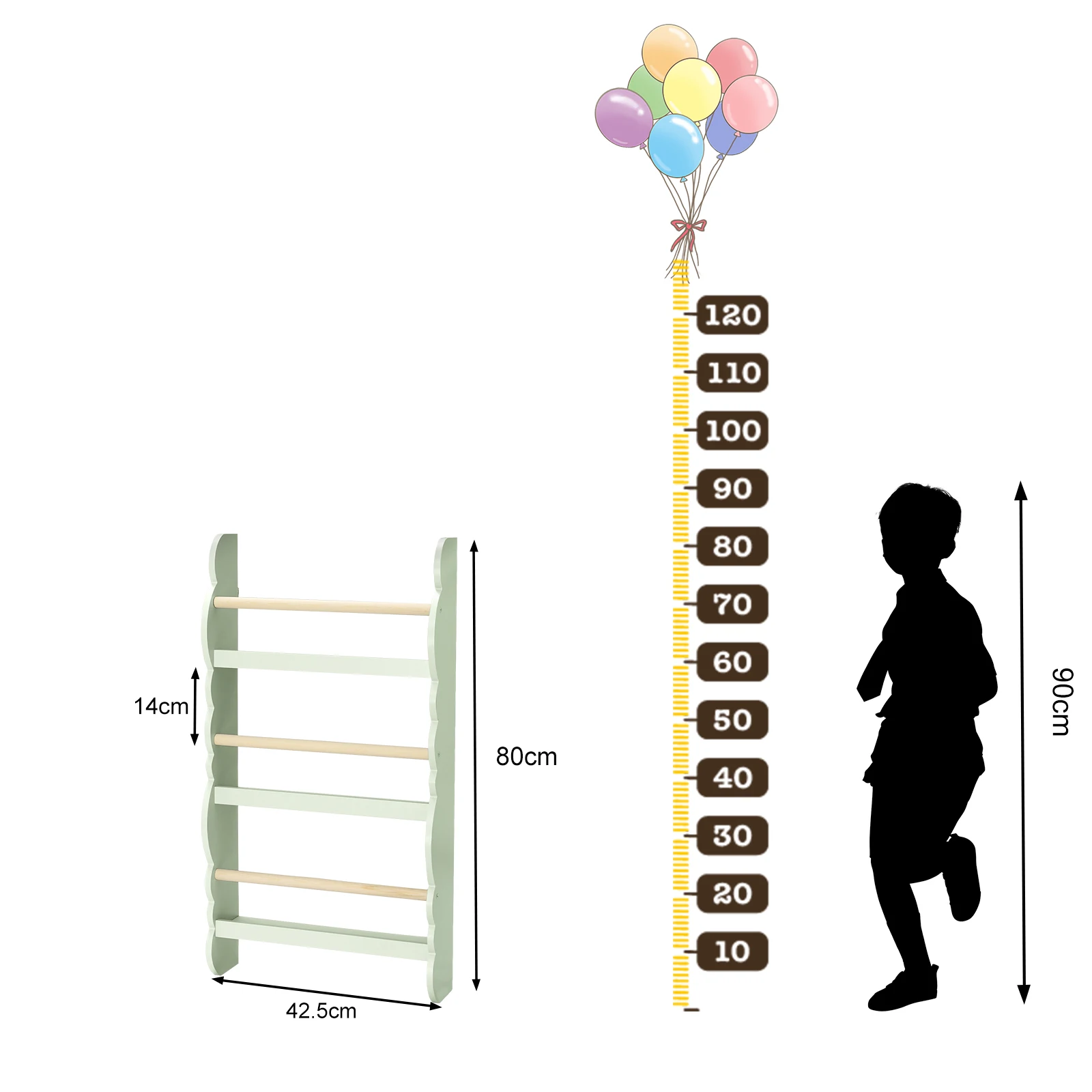 EASY Assembly: The wooden children's bookcase comes with a detailed, illustrated installation manual and included accessories. It is very easy to mount it on the wall. Total dimension: 42.5x14.5x80cm (LxWxH)
