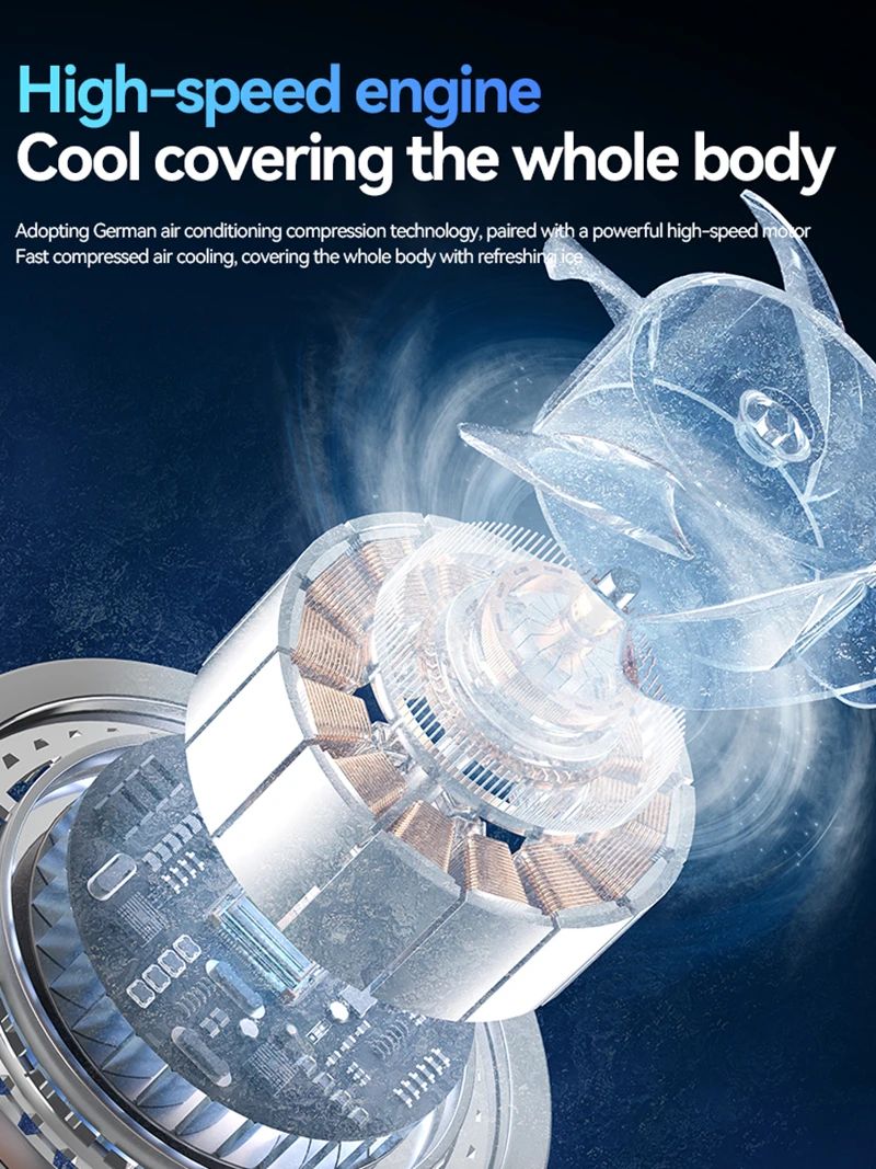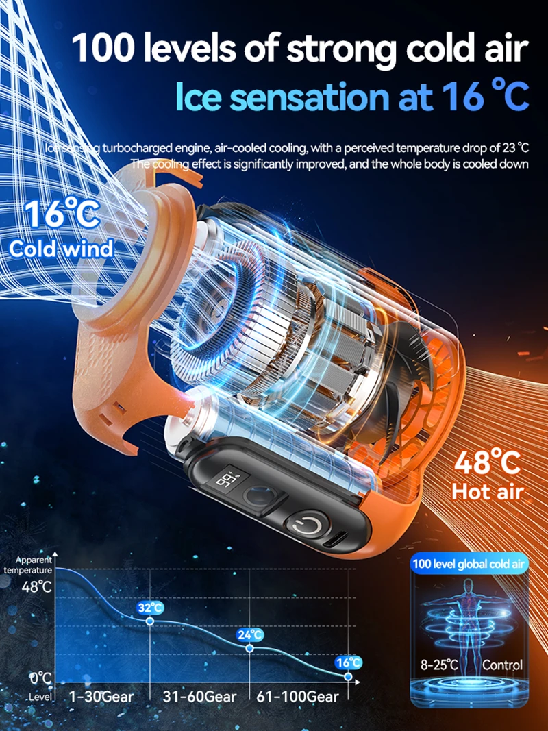 1.Streamlined Cooling: Experience the cutting-edge of personal climate control with our hanging neck fan, featuring a high-velocity focused motor that delivers a powerful, steady stream of cool air without the bulk of traditional blades.