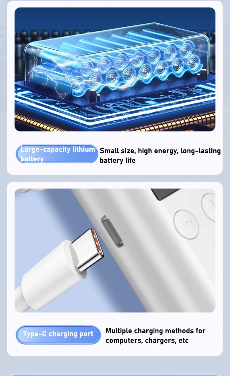 ✔ USB Rechargeable – Built-in 2000mAh battery, fully charges in 2-3 hours (USB-C cable included).