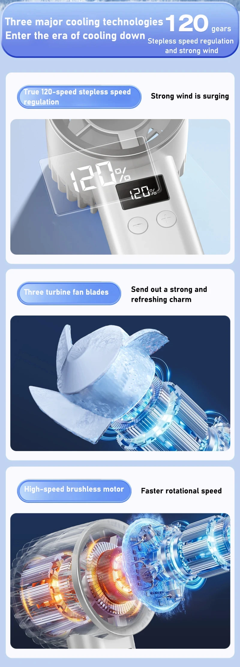 ✔ 120 Speed Settings – Adjust airflow from gentle breeze to powerful cooling with precision.
