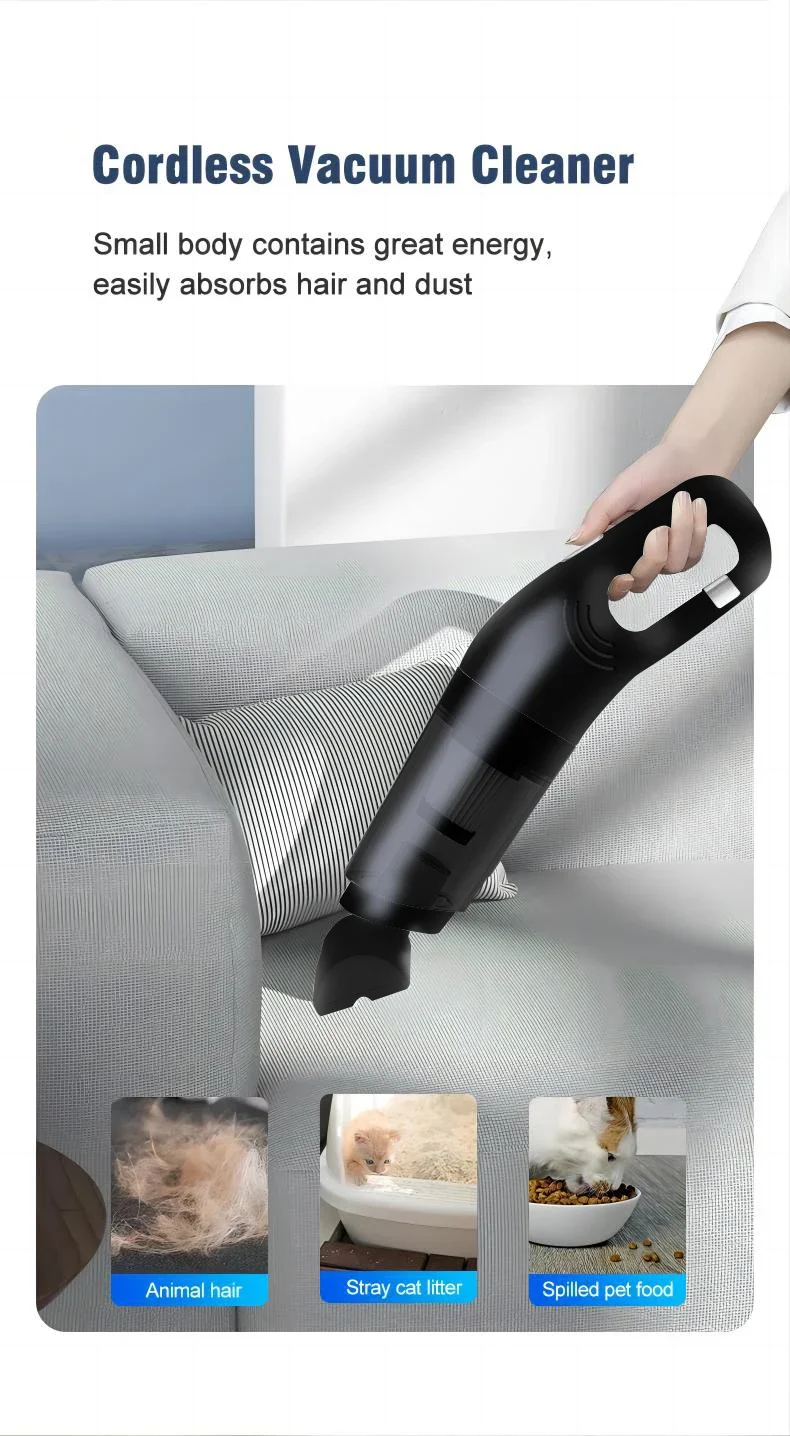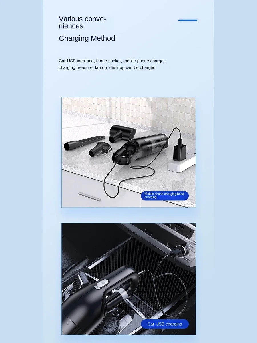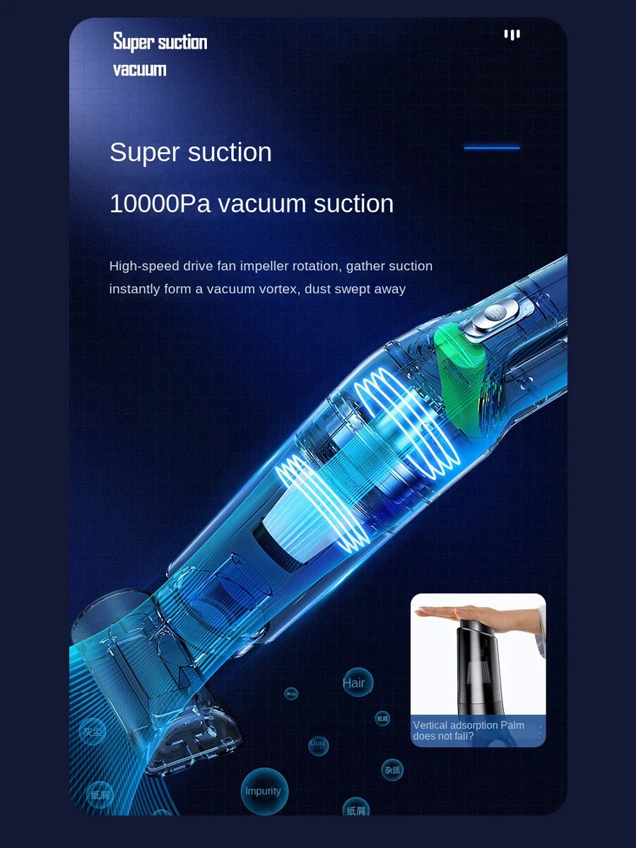 1.High Power Suction: Delivers strong suction performance, effectively tackling dust, dirt, and pet hair for a thorough clean in both home and car.