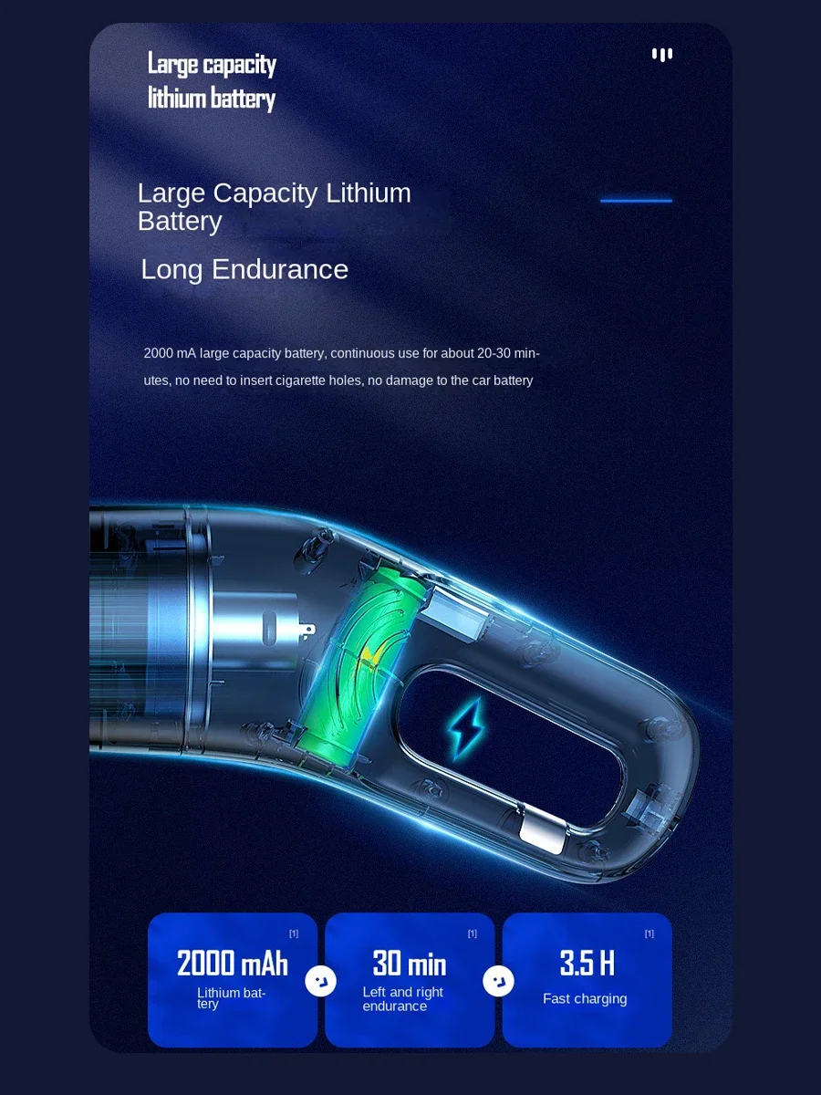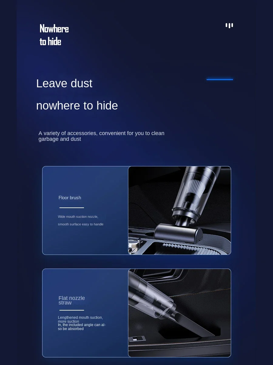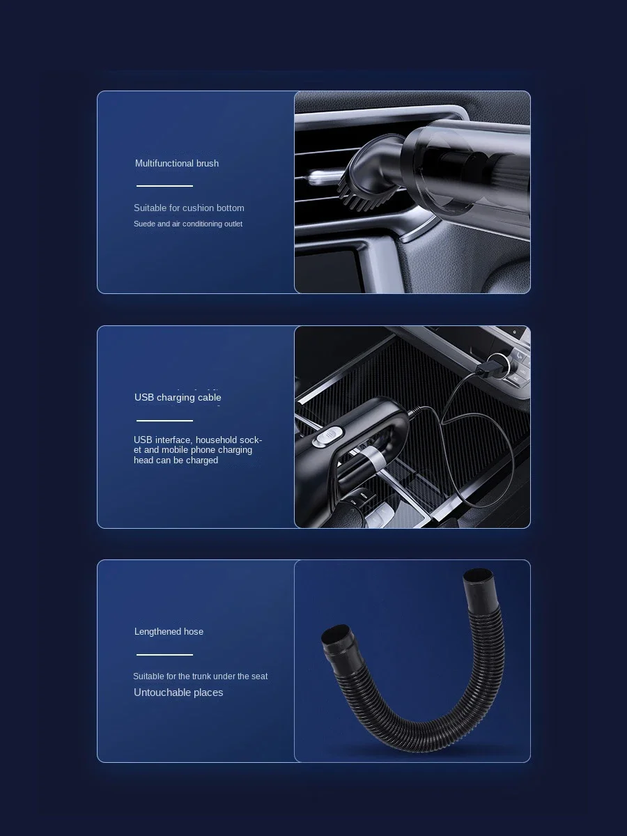 1.High Power Suction: Delivers strong suction performance, effectively tackling dust, dirt, and pet hair for a thorough clean in both home and car.