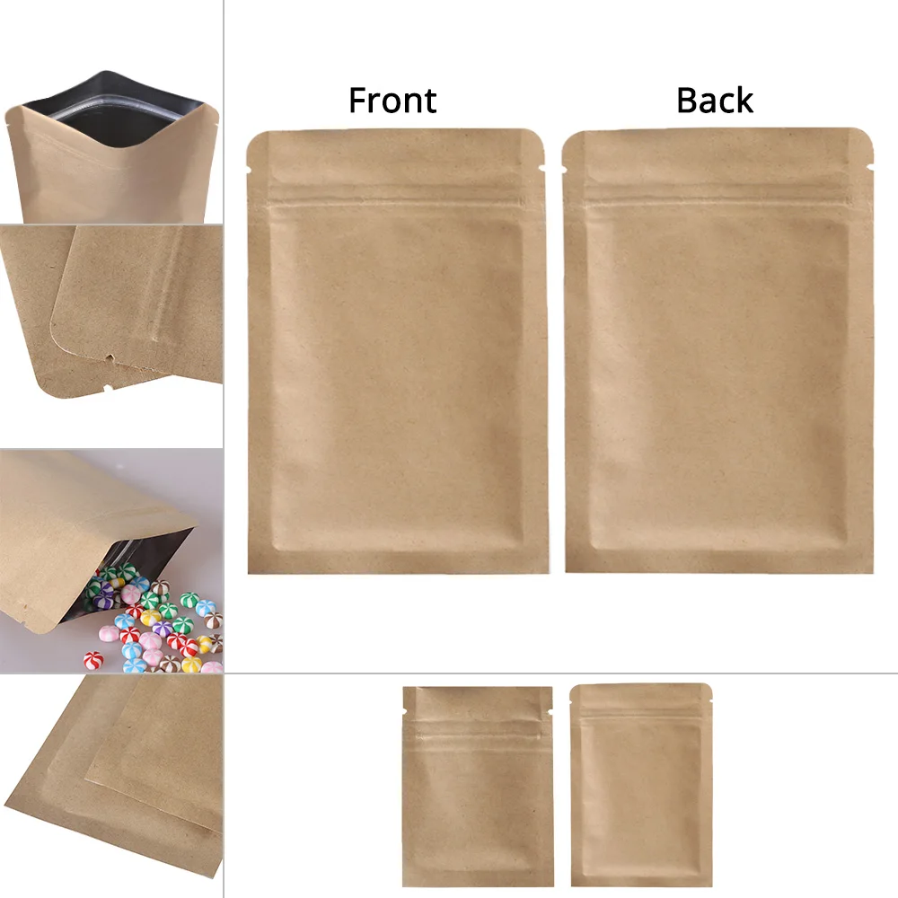 Zip Lock Mylar Packaging Bags with Tear Notch,Multi Sizes Smell Proof Kraft Paper Bags,Heat Sealing Ziplock Pouches,Eco-friendly