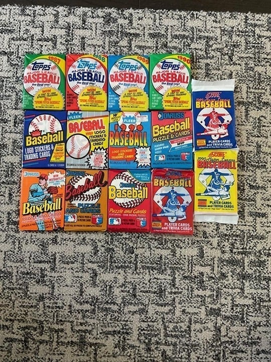 This lot is of 218 baseball cards still sealed in original 14 wax packs. All of the packs will be from 1990 and earlier. This lot will contain packs from different brands and years. Some of the brands that may be included are Topps, Fleer, Score, Upper Deck & Donruss. Picture shows the exact packs you will receive. PLEASE DO NOT EAT ANY GUM INCLUDED I