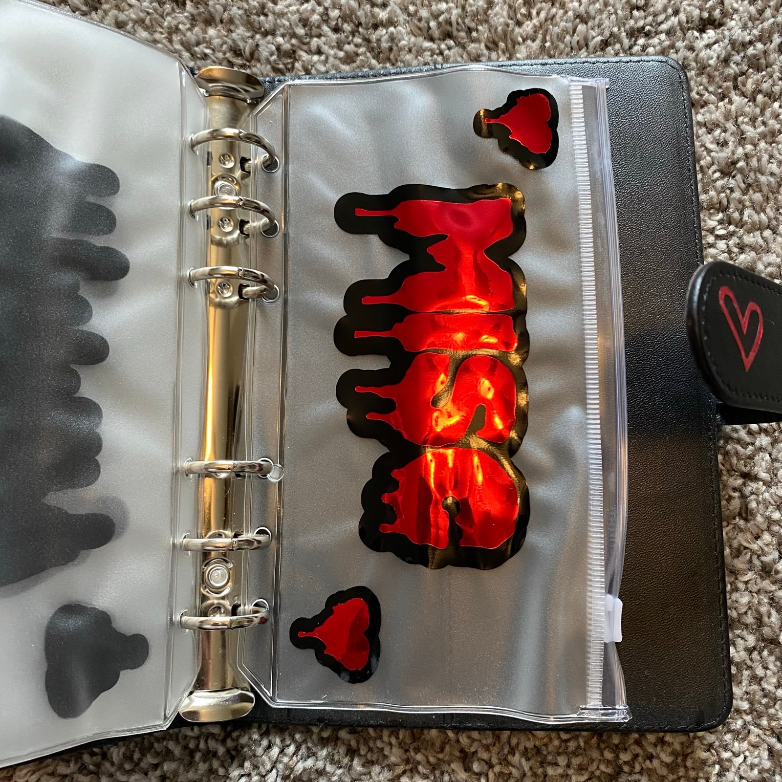 - Has Ghost Face on the front and a mini heart on the back. 6 different envelopes inside for budgeting, along with pockets on the front inside. Also comes with some budget sheets! Never been used, brand new! The only thing done to it was I took the name off the back since it was personalized. I believe it is an A6 binder, but am not 100% sure. Was over $45+ new with all customizations. Perfect for an alt baddie who wants to start cash budgeting!