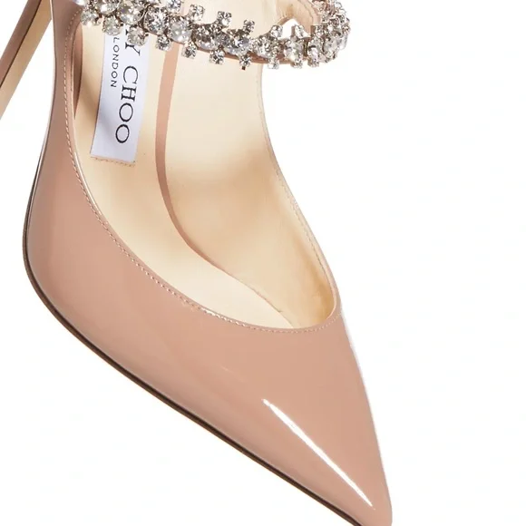 These shoes are in EXCELLENT PERFECT CONDITION! worn only 2 times. The only thing wrong with them is the bottoms are scuffed from wearing. Everything else is in absolutely perfect condition!!! Elevate your style with these Jimmy Choo heels, crafted in their chic ballet pink shade. The pointed toe and high stiletto heel offer a timeless elegance, perfect for any sophisticated event.