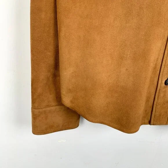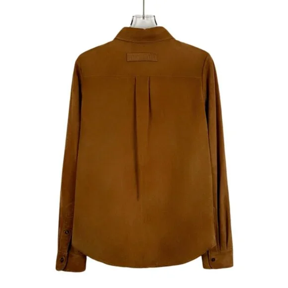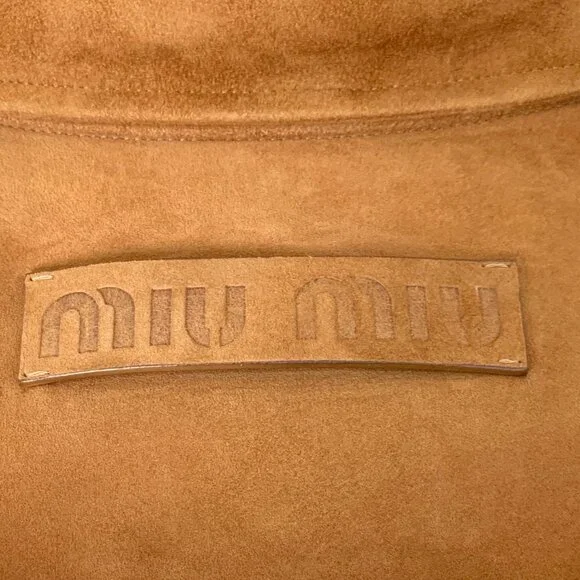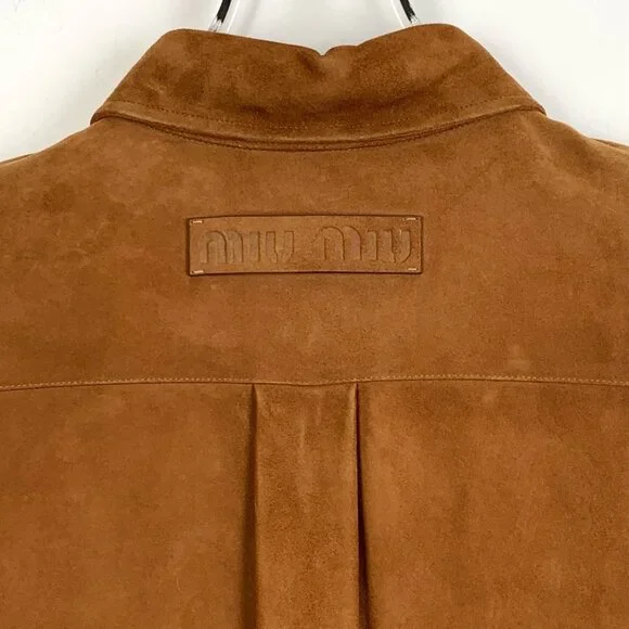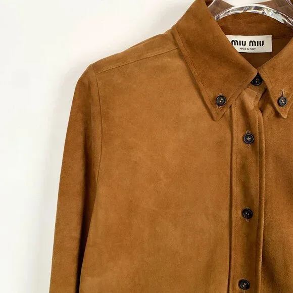 Miu Miu 2022 Brown Lambskin Leather Collared Single-Breasted Long Sleeve Shirt (X14061) - Size XS (36) - 99% NewThis sophisticated brown lambskin leather shirt from Miu Miu’s 2022 collection features a classic collared design with a single-breasted front, offering both elegance and modernity. The high-quality lambskin leather provides a luxurious feel and sleek appearance, making this shirt perfect for both casual and semi-formal occasions. In 99% new condition with no visible signs of wear, this shirt is a versatile and timeless addition to any wardrobe.