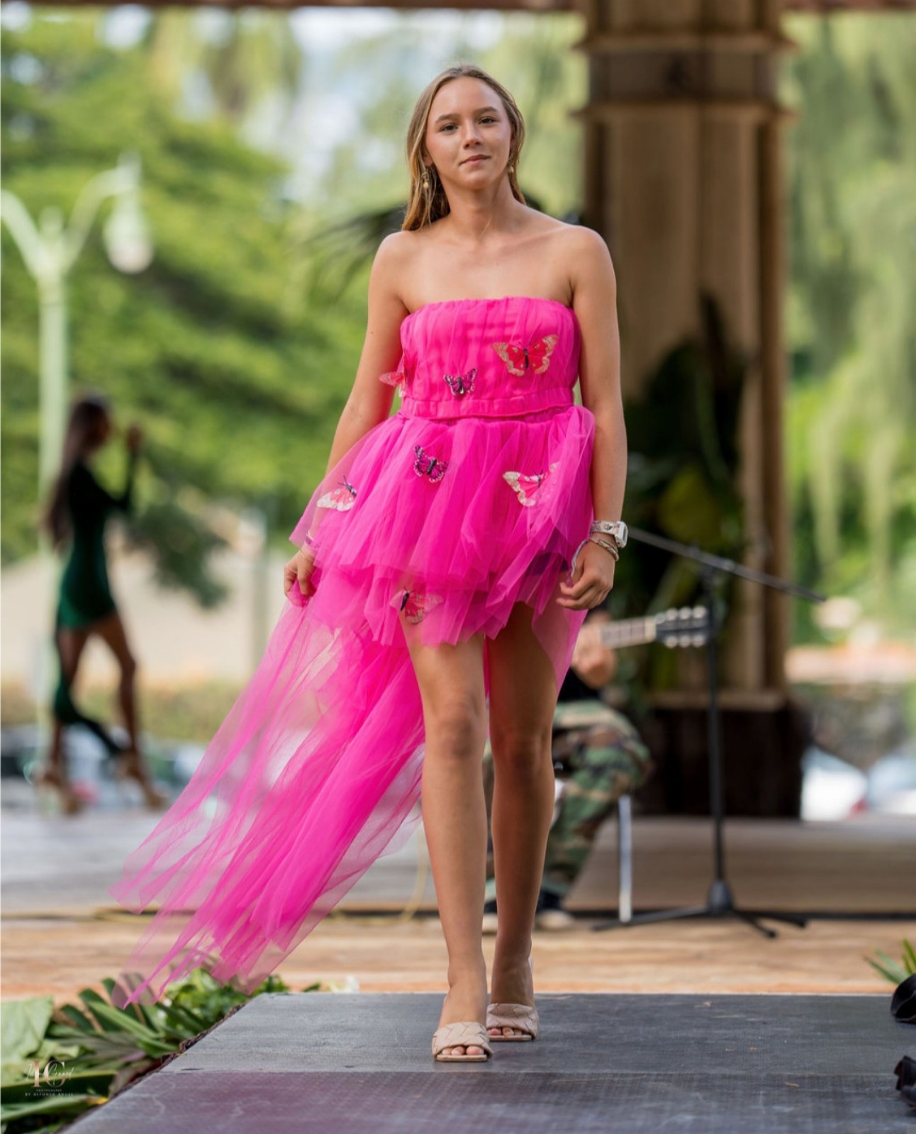This one of a kind set will definitely catch eyes. It certainly did when it made its preview on the runway in a recent Fashion Show in Honolulu, Hawaii. The dress is a size small measuring at 28 to 36 Breast, 24 to 36waist, and up to 40 hips. This dress is a fashion between fabric and fiber. Wear this beauty and make a statement. The headband is gorgeous. . A super Sexy tulle dress with butterflies. Accept my price or make me a reasonable offer.