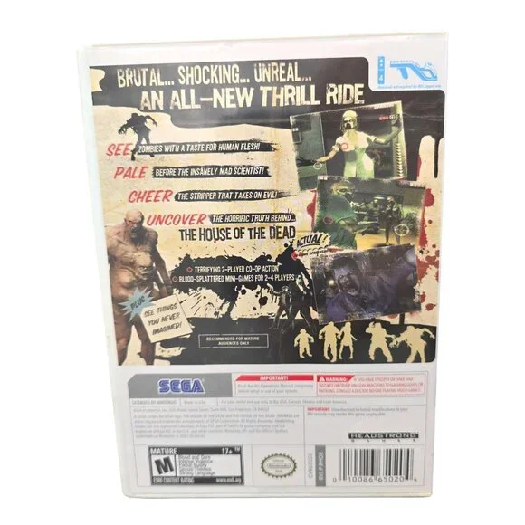 Dive into a thrilling and gore-filled adventure with The House of the Dead: Overkill for Wii, brought to you by Sega. This complete set includes the game disc and manual.• Compatible with Nintendo Wii• Includes game disc and manual• Published by Sega• Mature rating (17+)• First-person shooter game• Engaging storyline with intense actionIn good condition. It shows minor wear consistent with age. Some very small scratches but it is tested and does not hinder the playability of the disc. Please view photos carefully as they do form part of the description. Buyers are responsible for zooming in and examining photos carefully for any details, aging or imperfections. Items are from a smoke free, pet friendly home but all items are stored in clear poly bags or totes so contact is minimal.All orders are shipped the same or next business day.Please message me with any Questions!Thank you for supporting my small business!