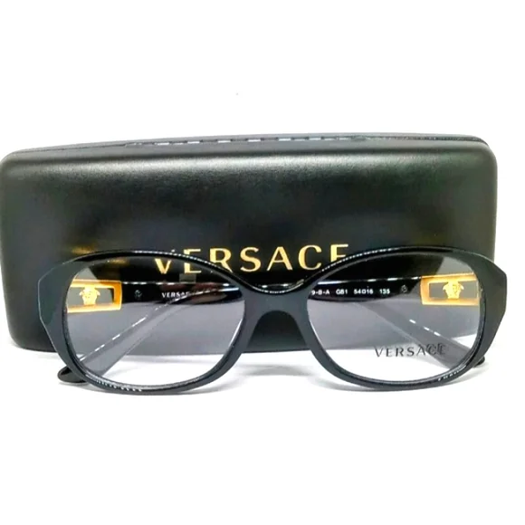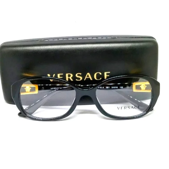 NWT VERSACE "3179-B-A" EYEGLASSES WITH DEMO LENS:MODEL:"3179-B-A "COLOR: GBI (BLACK/GOLD)SIZE: 54/16/135MMGENDER: WOMEN SHAPE: SEMI OVALMATERIAL: ACETATE LENS WIDTH: 54MMBRIDGE WIDTH: 16MM TEMPLE LENGTH: 135MM FRAME TYPE: FULL RIM RX-ABLE: YES ~EXCELLENT CONDITION ~***INCLUDES DEMO LENS ******INCLUDES CASE ***VERSACE CASE ***MADE IN ITALY 🇮🇹 ***SERIAL NUMBER:BV2387123