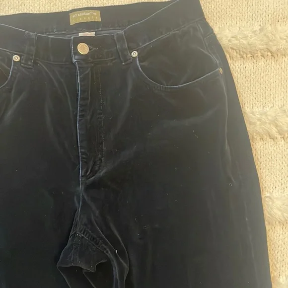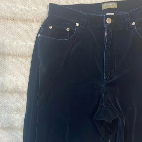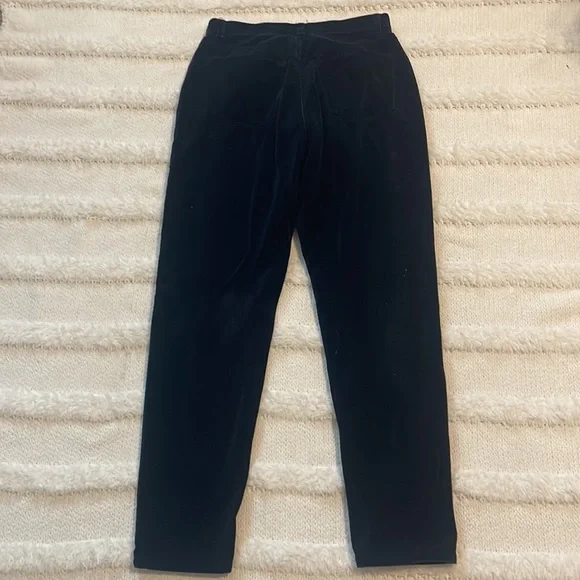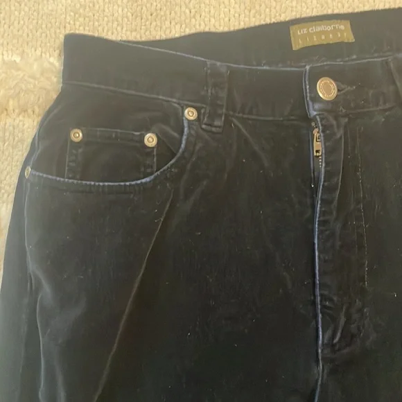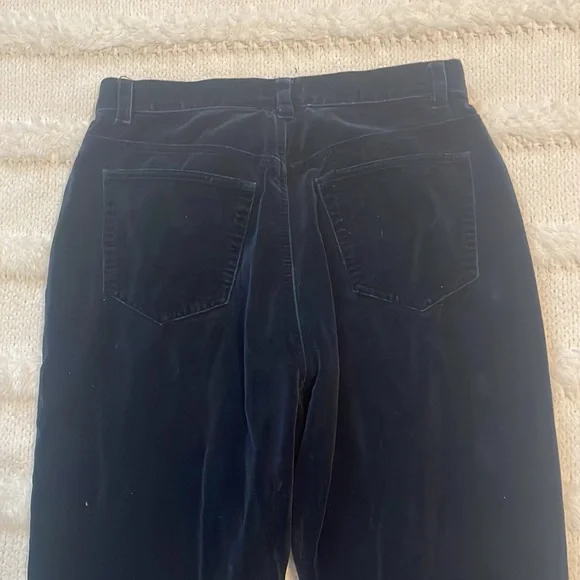 Vintage 1990’s Liz Claiborne LizWear black velvet high waisted pantsFeatures classic three pocket front and two back pockets with belt, loops, and a zipper and metal button closureFeels like velvet, but made of 100% cottonRN number 52002CA number 16396Women’s size 12. Vintage sizing tends to run small so please see measurements below for the best fitWaist 14 3/4 of an inchRise 11 1/4 inchInsane 28 inchesLength 40 3/4 of an inchleg opening 6 inchesThese measurements are subjectiveNew to ? Sign up using our referral code wrappingitup for $10 toward your first purchase.Smoke-free business.